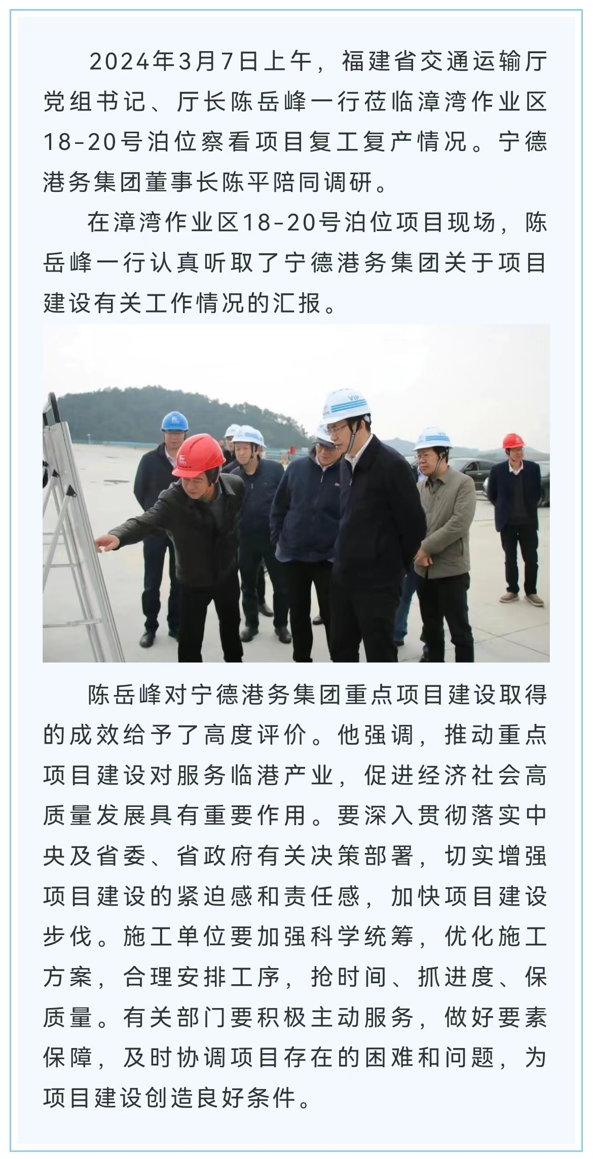 [福建省交通运输厅党组书记、厅长陈岳峰一行莅临漳湾作业区18-20号泊位察看项目复工复产情况 - 51视频