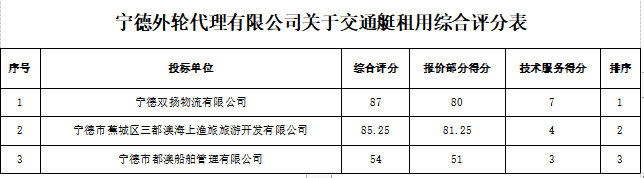 关于宁德外轮代理有限公司交通艇租用项目询价结果的公示