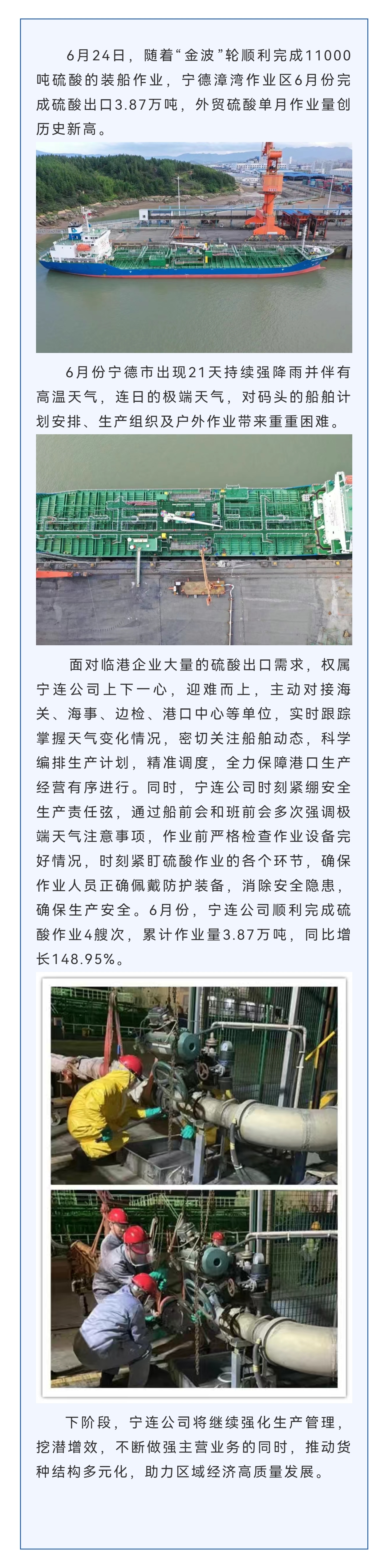 [3.87万吨!宁德漳湾作业区外贸硫酸单月出口量创历史新高 - 51视频